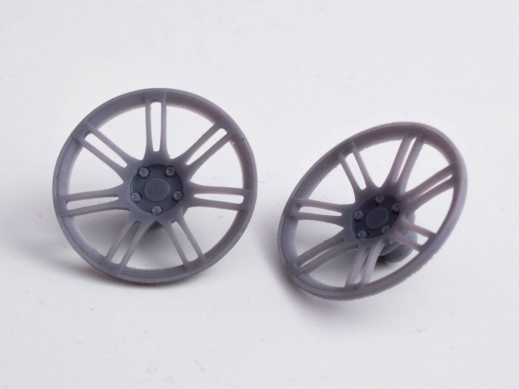 Du kaufst hier einen Satz (4 Stück) unlackierte Radkappen für dein Modell. Die Lackierten Felgen auf den Bildern dienen nur der Veranschaulichung.